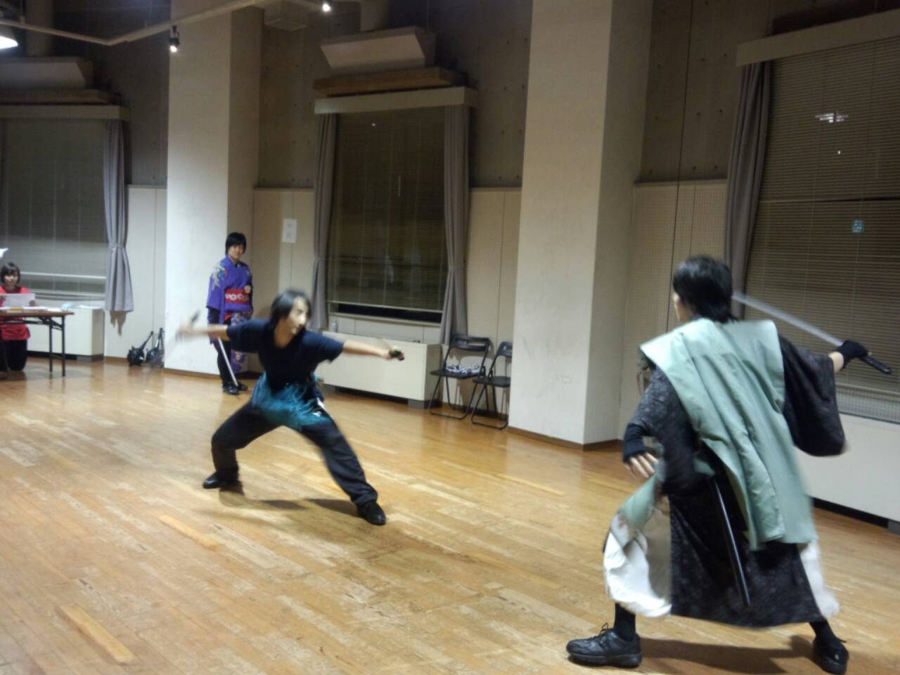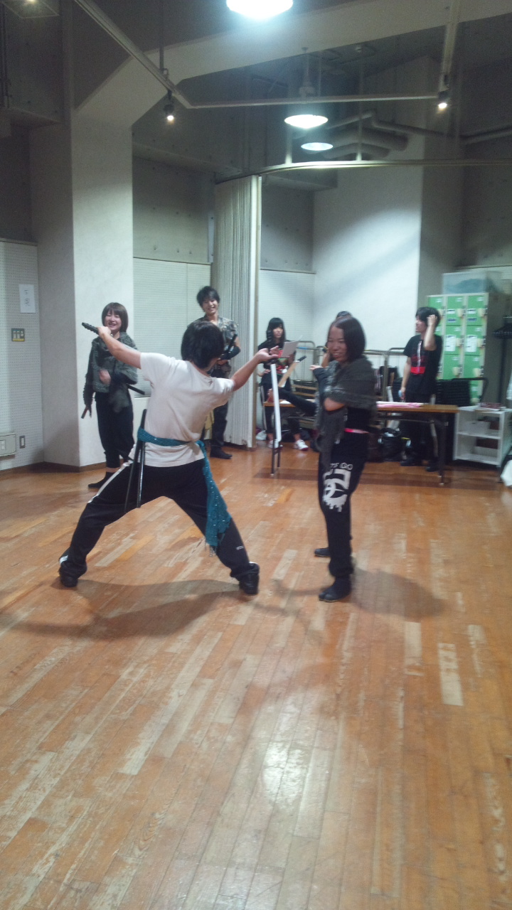 はい!立ち回りの写真ですね、舞台上で戦うとはもちろん戦う演技をすると言う事で実際に剣を当てたりすることは基本的にはありません。(今更言うことではないですが^_^;)